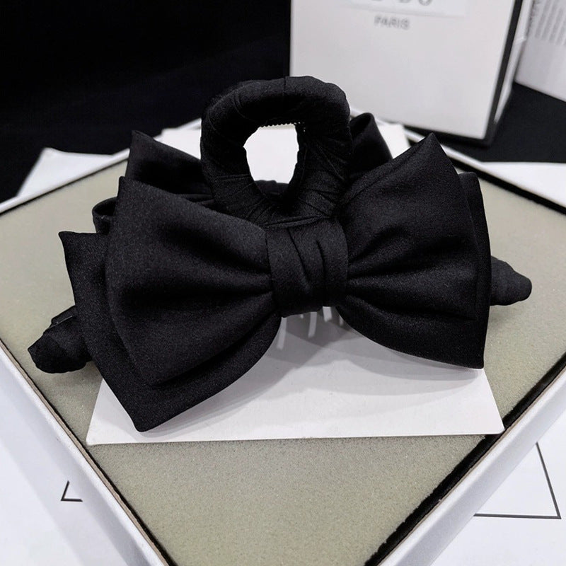 A structured bow claw clip crafted in soft cloth material, designed to bring a touch of elegance to everyday styling. The oversized bow detail adds volume and charm, while the wrapped claw base provides a smooth, refined finish. Handcrafted through a manual process, each clip delivers a polished look with gentle texture. Available in classic black and warm brown, this piece blends femininity with minimal sophistication, making it a standout accessory for modern hair styling.